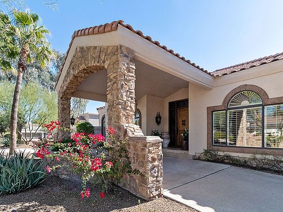 The perfect balance of rustic charm & classic elegance come together in this welcoming and impeccably detailed French country home. Custom cabinetry throughout this 4 bed/4 .5 bath home as well as gorgeous stone fireplaces. Gourmet kitchen is appointed with Wolf gas range & herringbone brick hood, Subzero fridge, and drawers, plus warming oven and prep sink . Plenty of room for family and guests with bonus game room , an office with private courtyard access, and split guest suite. Plans were done for both expansion of existing office bonus room as well as to build entire guest casita. Locally renowned Legacy Design Remodeling recently remodeled both master bath and closets with exquisite attention to detail & design-spectacular spa shower w/ dual benches, marble topped cabinets, separate vanity area, his & her elegant closets. Relax in your tranquil , private backyard and take in sunset views from your gorgeous pool!