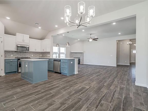 Come home and sit out on the front covered patio in the porch swing after a long day. Beautiful Craftsman style Aspen plan in Deerbrook Neighborhood. 4 bedrooms or 3 plus an office space. Open concept floorplan with generously sized living space that flows into the kitchen and dining area. Upgraded gas stove, mosaic tile backsplash and laundry room floor, wood look tile in main living spaces. Spacious 3 car garage with large storm shelter that fits up to 10 people. Large covered back patio. *Pets are allowed on case by case basis with owner approval*.