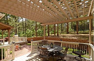 Beautiful updated 2 story in private & serene setting on large professionally landscaped lot in Perry Park. Approximately 3,725 FSF with 4 Bedrooms (main floor study is 4th) and 3.5 bathrooms. Enormous master suite with private deck & luxurious 5 piece bath with jetted tub. Spacious kitchen with slab granite, new stainless appliances, double oven & tile floors. Great workshop in lower level with additional access from stairs in garage. Newer roof. Wonderful outdoor living space with 2 decks, pergola, some new trees, new shutters and new exterior paint. Only 35 minutes to DTC or Colorado Springs. Near Perry Park Country Club, bike & hiking trials, horse stables and Pike National Forest.