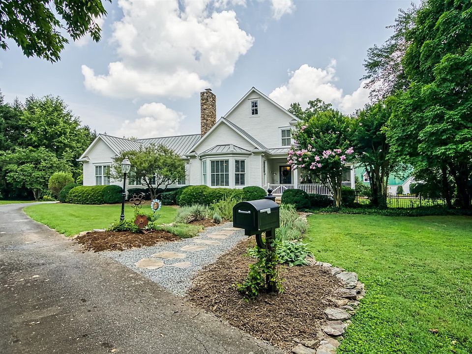 Farmhouse-style home with modern layout on 3.24 acres. Private oasis yet close to everything! Built in 2005, a large wrap-around porch entrance leads into a bright and spacious great room with dining area open to kitchen. Custom barn door entertainment center. Gas fireplace sitting nook. French doors make this home's layout open with sweeping views of this stunning property. The kitchen features honed, rough granite counters & a large island. 48-inch Thermador 6 burner, double oven range. Large walk-in pantry space, front & back powder rooms. Large bonus room with separate staircase. Master with vaulted, beamed ceiling is on main with double closets and bath with clawfoot tub. Private office/nursery off the master bedroom. Library/den with stacked stone fireplace and built-in storage. Upstairs is a second master with large bath/walk-in closet. 4 bedrooms up, 2 full baths. The guesthouse has been recently updated with added laundry room and shower. Upstairs is a fully renovated apt. Downstairs has a large space for home gym/yoga studio/artist space. The property is fully fenced and gated. Enjoy low-cost electricity with a full solar panel system and peace of mind with a whole house generator.