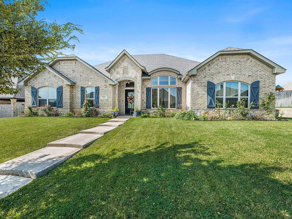 The spacious primary offers a relaxing retreat with a luxurious bathroom, while each secondary bedroom includes a large closet for ample storage.Step outside to a covered patio overlooking the new sod and charming stone exterior. The 3-car garage offers plenty of room for vehicles or toys. This home blends luxury, comfort, and location—schedule your showing today!