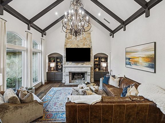 Welcome to this stunning SINGLE STORY French country estate, offering refined living space on a sprawling 2.66-acre cul-de-sac lot. Blending timeless architecture with modern updates, this meticulously maintained home is the epitome of luxury, sophistication, and serenity. Inviting interior adorned with rich wood flooring, stately millwork, and soaring ceilings create an atmosphere of understated elegance. Outdoors, discover a true resort style oasis with a brand-new pool & spa, gas fire pit, and covered outdoor kitchen. With over 755 square feet of covered patio space, enjoy tranquil views of the lush grounds and mature trees that surround the property. Additional features include three car garage, driveway gate, Generac generator, and brand-new energy efficient windows. Whether you're hosting elegant soirees or seeking a peaceful retreat, this masterpiece offers the best of luxury country living in the heart of Richmond. NO WATER BILL-well water