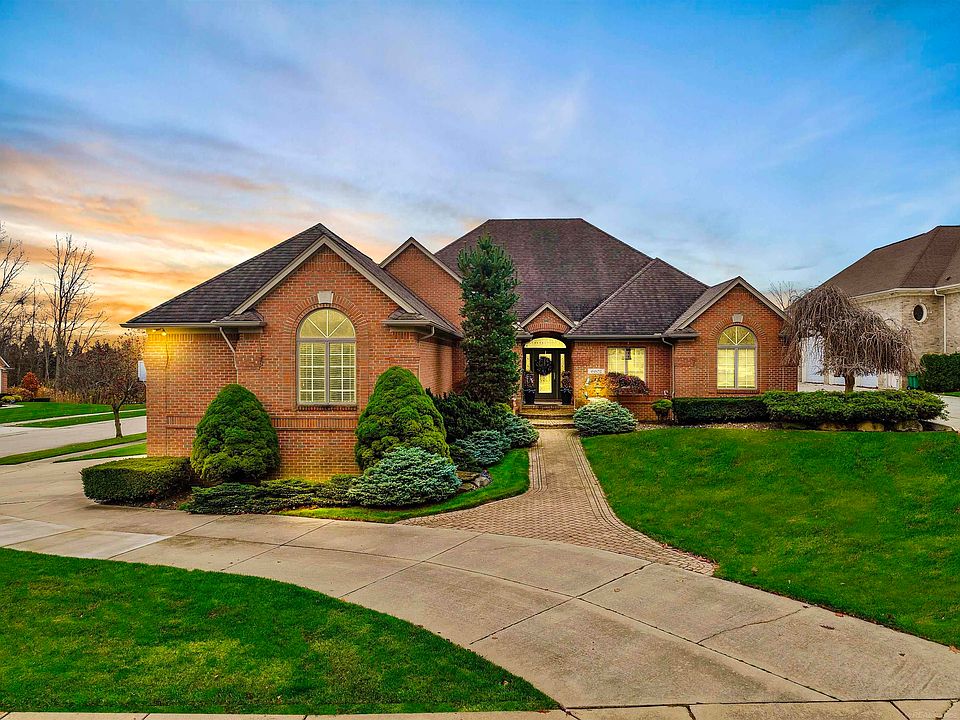 The highest & best offer is due by Sunday at 6 PM. This stunning ranch home combines luxury and comfort, situated on a spacious lot (almost a 1/2 acre) in a desirable location. The residence features a welcoming paver entry and a grand foyer, leading to a sophisticated library and an elegant formal dining room with crown molding. The gourmet kitchen boasts a large granite island and professional-grade appliances, while the airy living room features cathedral ceilings, a two-way granite wet bar, and a cozy fireplace. The master suite offers natural light, a walk-in closet, and a spa-like bath for relaxation. Outside, professionally landscaped grounds include a beautiful patio for entertaining. The finished lower level provides additional recreational space. Westridge Estates offers a lifestyle of sophistication and comfort, making this home an ideal living experience. Sub has access to the Macomb Orchard Trail. invisible Fence Unit and shelf in the family room to go with the seller.