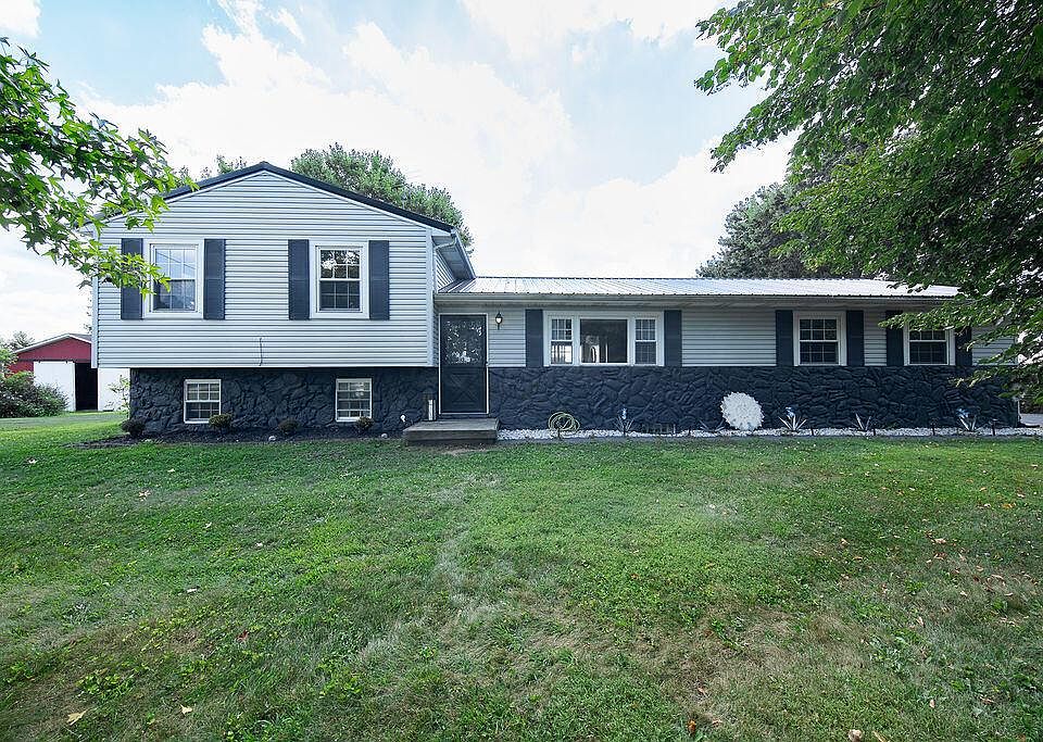 This beautifully updated, well-maintained split level home offers an opportunity to own a private country retreat! Sitting on 2 acres with unobstructed, panoramic country views, this home features approximately 1 fenced acre, a 40x32 barn with lean to, and a 56x32 pole barn with a dedicated entertainment space, giving this home incredible mini/hobby farm potential!! The entry level features a spacious dining room, kitchen & half bath with large windows and an abundance of natural light. Just a few steps down the cozy living area awaits, complete with a wood-burning fireplace. Upstairs, you'll find 3 generously sized bedrooms and full bath, creating a private and comfortable sanctuary. Enjoy the stunning backdrop from the composite back deck! Recent updates include: Mini Split AC 2025, Metal Roof 2023, Water Heater 2023, Water Softner 2022, Updated Electrical 2016, Armstrong Fiber Internet. Just minutes from Mid-Ohio and Northmor Local Schools. Come see it today & envision your new life!