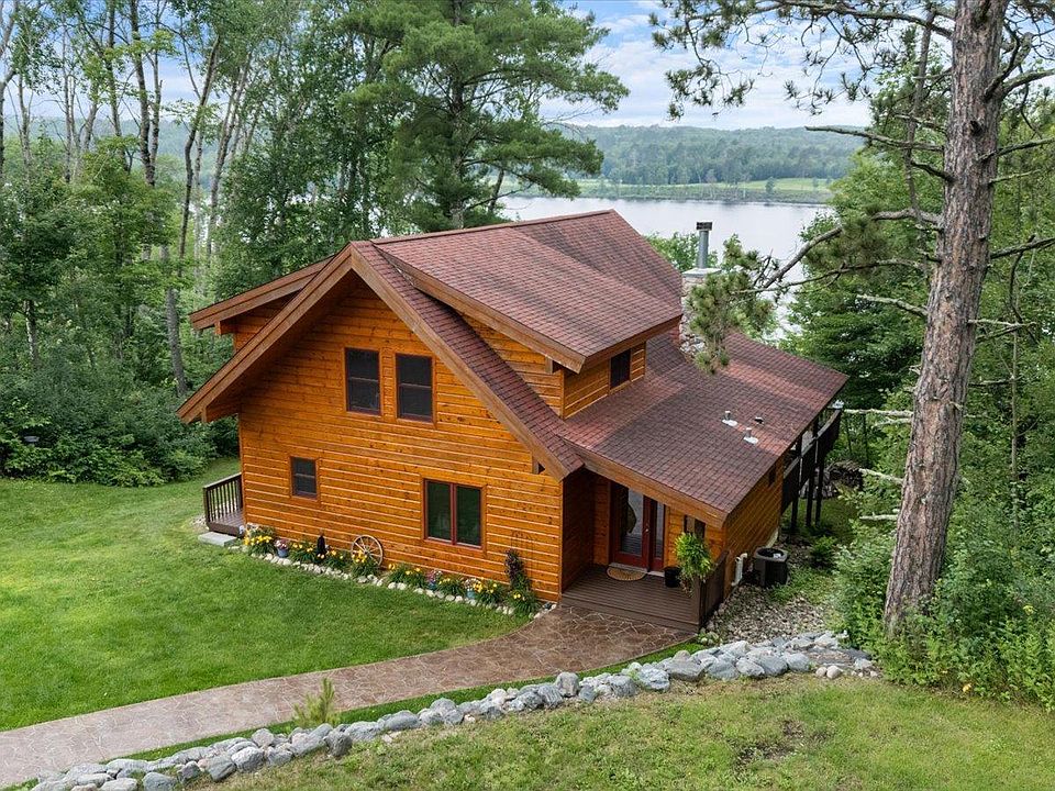 Offered for the First Time – Log Home on Sabin Lake at Giants Ridge Retreats. Tucked on 4+ private acres and nearly 400 ft of shoreline, this exquisite log home is a rare and remarkable offering. Timeless craftsmanship and sweeping western views of the lake & Giants Ridge Golf Course, this home offers the perfect balance of rustic charm & refined living. Main level welcomes you with a spacious entry & 1/4 bath, leading into an open floor plan designed for gathering and relaxing. Natural stone, wood-burning fireplace anchors the living room, and panoramic lake views pour in on all levels. The kitchen, dining, and living areas seamlessly flow together, and the main-level primary suite offers comfort and privacy. Upstairs, a warm and airy loft hosts two bedrooms, sitting area and a full bath. The walk-out lower level offers a generous rec room, cozy study, 3/4 bath, and an additional bedroom. Expansive wrap-around deck, wo-car garage includes a finished 25x17 bonus space above.