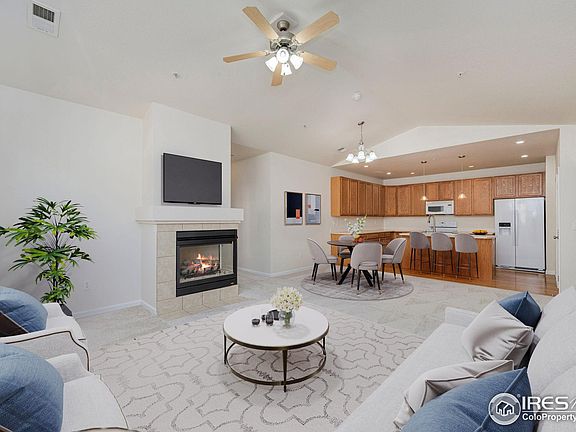 Welcome home to this newly updated 2-bedroom, 2-bath condo with an attached garage! Step inside to soaring vaulted ceilings, gleaming hardwood floors, and a cozy gas fireplace. The spacious kitchen features a large center island, extensive cabinetry, and a pantry-perfect for all your storage needs. The primary suite offers a private 4-piece bath for comfort and convenience. Enjoy the oversized covered balcony, complete with a large storage closet that is spacious enough to be a studio! A full laundry room, located just off the kitchen, adds to the functionality of this thoughtfully designed home.