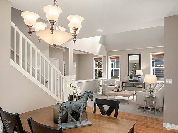 Backing up to a serene greenbelt setting with scenic views of the Snoqualmie Valley, this lovely home offers 4 beds, 2.75 bathrooms, 3 car garage, + a large main floor office w/ closet that could function as a guest room, conveniently located next to the main floor bathroom with a shower. The primary suite features views of the greenbelt and the Snoqualmie Valley to the north, providing a tranquil retreat. Main level includes a family room and kitchen with windows that frame picturesque views of the Greenbelt. Upstairs, the bonus room serves as a versatile space, perfect for informal living or as a flexible area. Conveniently located 2 minutes from the country club, the future owner could move in just in time to tee off for golf season!
