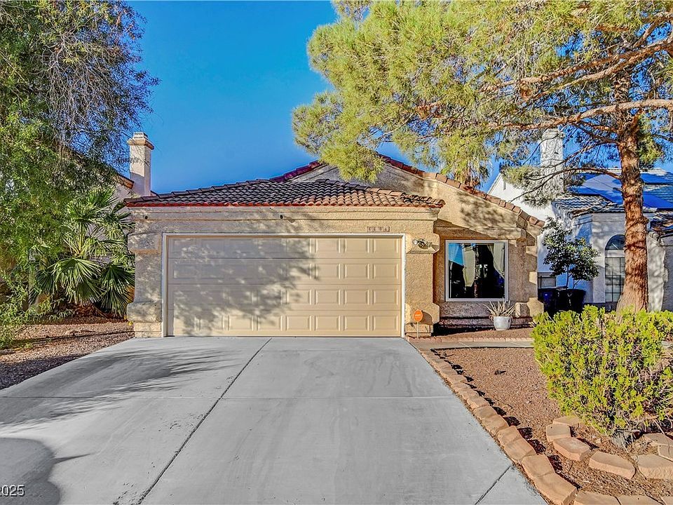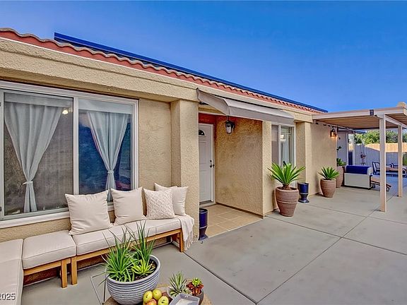 Welcome home to this charming single-story residence in the desirable Woodcrest community of northwest Las Vegas! This lovely home features three bedrooms, two bathrooms, and a two-car garage. The spacious living room features a cozy fireplace, creating a warm, inviting atmosphere. Enjoy peaceful moments in the private atrium/courtyard, ideal for relaxing and unwinding. Step outside to the serene backyard with a covered patio, perfect for outdoor living and entertaining. Conveniently located near major freeways, shopping, dining, entertainment, schools, and medical facilities. The home has a solar lease that runs through 2035. The seller is willing to pay off the remaining solar balance with a full-price offer. The property was recently appraised, and the list price reflects its current market value. This home truly has it all for its next owner, combining comfort, convenience, and exceptional value, making it an ideal choice for those seeking a prime Las Vegas location.