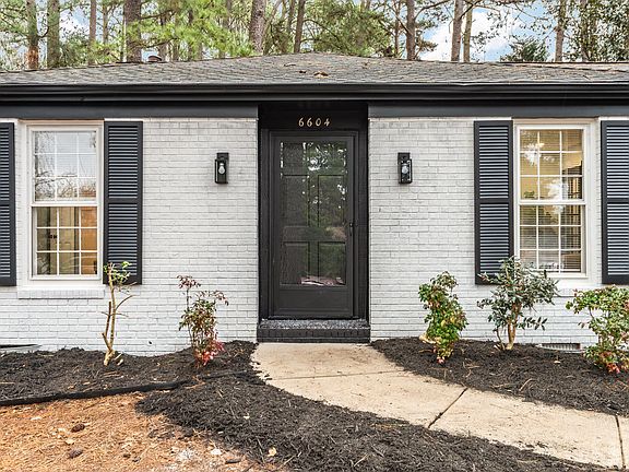 Welcome to 6604 Winding Trail, a beautiful fully renovated brick ranch home offering comfort, style, and easy one-level living in Raleigh. This thoughtfully updated residence features 3 spacious bedrooms and 2 full bathrooms, designed with both functionality and modern appeal in mind, with NO HOA! Step inside to discover a bright, open layout complemented by a formal dining room—perfect for hosting gatherings—and a dedicated office space, ideal for working from home or creating a quiet retreat. The renovations shine throughout, blending fresh finishes with timeless charm. From waterfall quartz counter tops, to new fixtures, cabinets, flooring, interior and exterior paint, remodeled kitchen and bathrooms, and an enhanced crawlspace insulation and vapor barrier plus much more! Outside, enjoy a fenced-in backyard that offers privacy and space for relaxing, entertaining, or play. A garage adds everyday convenience and extra storage. Move-in ready and meticulously updated, this home combines classic ranch-style living with today's must-have features—all in a desirable North Raleigh location. Minutes to North Hills, Crabtree, and convenient to downtown, Lenovo center, and RDU.