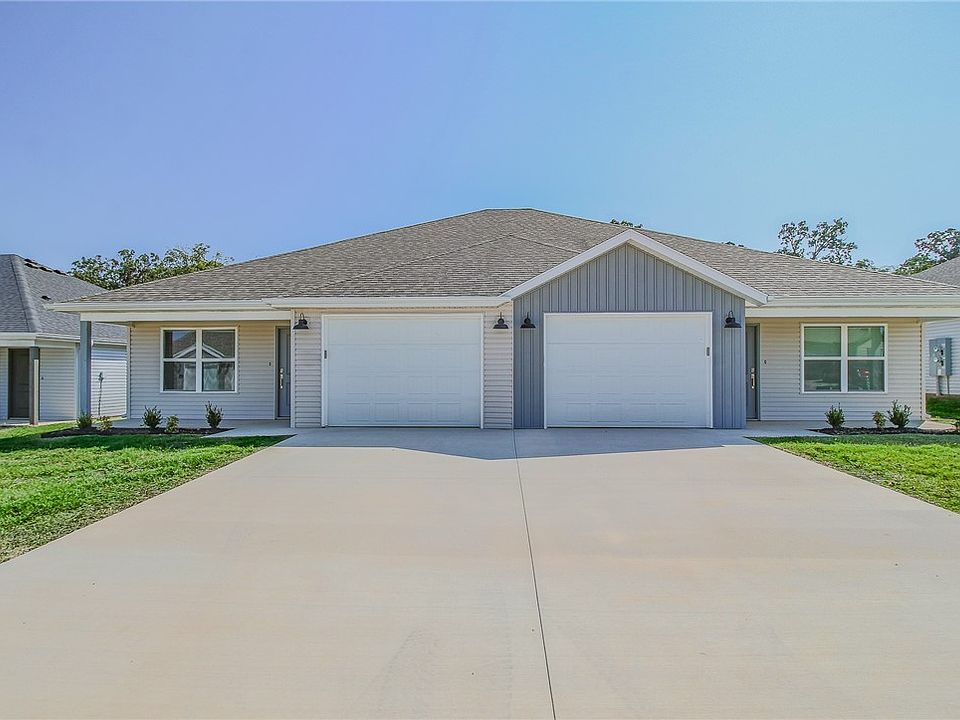 Amazing investment opportunity to own this new construction duplex. Efficient one level with each side offering 3 bedrooms, 2 full baths and one car garages. Designer finishes and fixtures including LPV flooring and blinds. Open concept with spacious kitchens and walk-in pantries plus impressive primary suites with luxurious baths and walk-in closets. Includes front landscaping, gutters and downspouts. Located in Bentonville school district. This duplex is still under construction with estimated completion 10-16-25. Completed pictures are of a similar plan and finish. Photos will be updated as construction progresses.