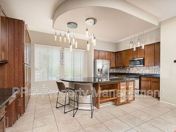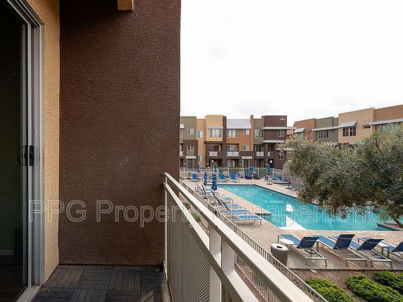Welcome to your new townhome in a highly sought-after gated community in Westgate offering the perfect balance of comfort, style, and convenience. This residence is available furnished or unfurnished and is ideally located within walking distance of the Westgate Entertainment District, State Farm Stadium, and Gila River Arena, placing premier shopping, dining, and entertainment right at your doorstep. Inside, you'll find a beautifully designed living space featuring hardwood floors, upgraded tile, and plush upgraded carpet throughout. The kitchen is a standout with granite slab countertops, a stylish tile backsplash, stainless steel appliances, and the added benefit of extra cabinetry for all your storage needs. The living room offers a warm and inviting atmosphere with a cozy fireplace, while ceiling fans throughout provide comfort in every season. The home includes spacious walk-in closets and a private balcony that overlooks the community pool and clubhouse, offering a relaxing view and an extension of your living space. An attached two-car garage provides convenience and security, and the property is ready now for immediate move-in. This home combines upscale finishes with an unbeatable location, making it a rare rental opportunity you won't want to miss.