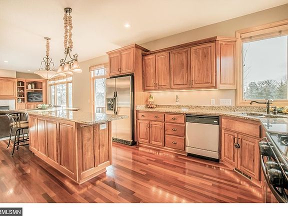 Grand 2-story home located on cul-de-sac lot with serene views. Large low maintinence deck! Walk to Donahue Park. Minutes to Fish Lake Beach and Dog park. Amazing cherrywood: floors, cabinetry, crown molding and stunning 5 inch trim. Kitchen boasts large island, granite counters, planning desk, stainless steel applinaces including gas range. Gas fireplace and built-ins. Office with elegant french doors. Master suite offering tranquil views. Heated lower level and master bath floors. Quality window blinds. Finished lower level walk-out. Move-in ready.Main Level* Inviting foyer is a warm welcome to any guest.* Brazilian cherry wood floors lead from the foyer to the dinette and kitchen.* Kitchen features stainless steel appliances including gas range, granite countertops, pendant, recessed, under cabinet and cabinet base lighting, ample cabinetry, above the sink window, planning desk, and huge center island with adjacent integrated dinette table. Easy deck access.* Elegant formal dining room with crown molding, stylish sconce lighting, and serene mealtime views.* Living room with wall-of-windows for abundant natural light and stunning tile surround gas fireplace flanked by custom built-ins.* Conveniently located office just off foyer with French doors and crown molding.* Laundry room with sink and ample cabinetry to keep you organized. * Mud room offers closet and garage entry door.* Attractive 1/2 bath with tile floors and pedestal sink. Upper Level* Master suite with crown molding and tranquil views. Luxurious master bath features heated tile floors, abundant cabinetry, double sink vanity, window, granite countertop, walk-in closet, tile surround whirlpool tub and shower. * 4 bedrooms on one level. * Full bath with double sink vanity, tile flooring and granite countertops.Lower Level* Family room features wall-of-windows and walkout to backyard. * Secondary bedroom offers so many options.* Large 3/4 bath with tile flooring.* Lower level heated floors.Additional Features* Large low maintenance main level deck with steps to expansive backyard.* Quality window treatments throughout.* Impeccable condition inside and out.* Neighborhood entrance to Donahue North Community Park.* Short walk to Fish Lake Regional Park and Beach.All information deemed reliable but not guaranteed.