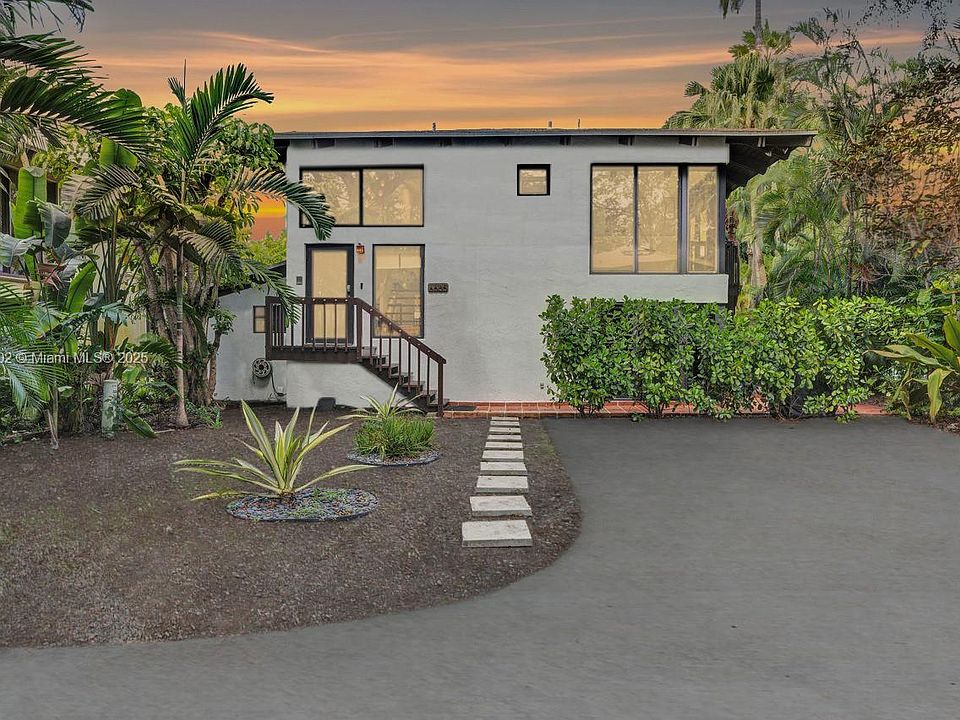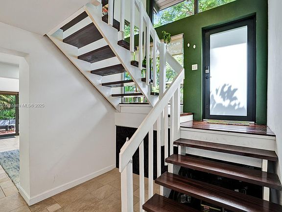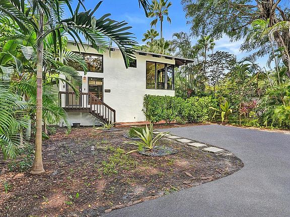Rarely available 3-bed/3-bath two-story 2,109 SF home in exclusive Forest Cove, a serene 32-home community tucked away in the heart of South Miami. The first floor opens to a bright living room with double-height, wood-beamed ceilings + windows spanning both floors. Sliding glass doors lead to your own patio surrounded by lush tropical landscaping. The first level, with stone tile floors, features a bedroom & full bath, while the second level offers LVP flooring, a spacious primary suite with balcony, updated bath, walk-in + wall-length closets, plus a third bedroom and bath. Additional features include AC (2020) Impact Windows & Doors (2019), laundry room, ample storage, 2 parking spaces, and a community pool near the home. Prime location near UM, Coral Gables, US-1 & downtown South Miami