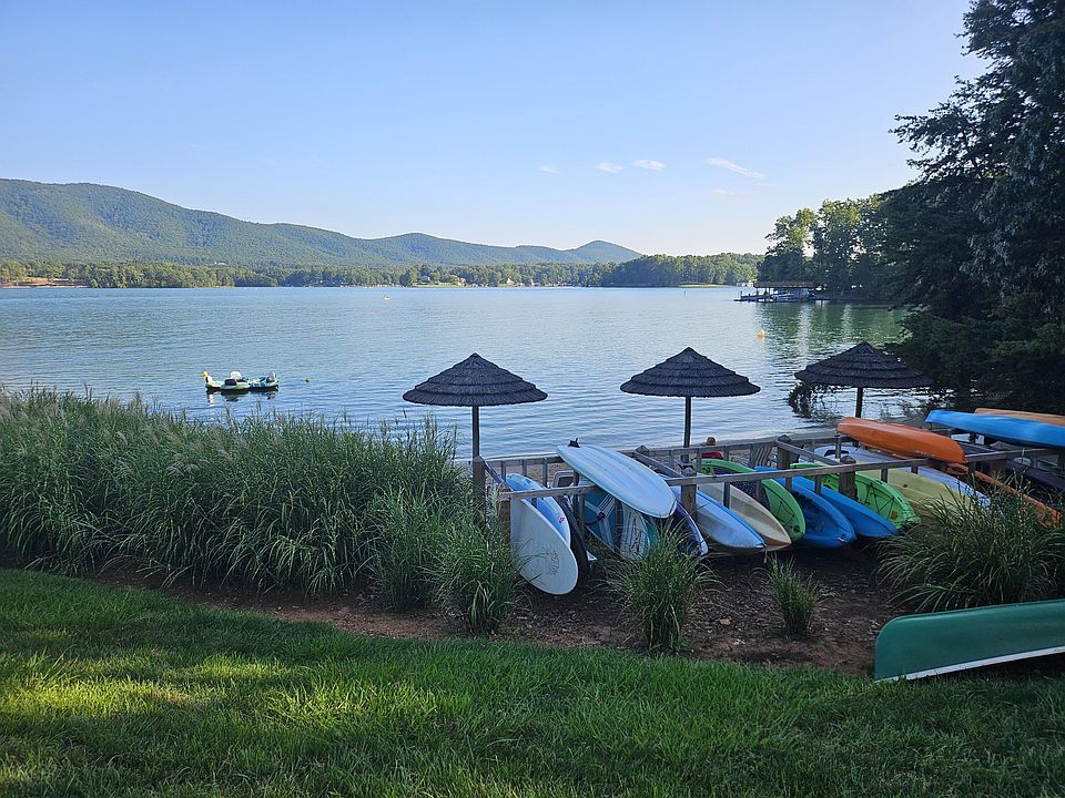 Imagine living on the most gorgeous point at Smith Mountain Lake. Views of the mountains, water, sunrise. sunset & fireworks.The best thing is this unit is located on the ground level and boasts two walkout patios for you, your plants as well as furry friends.With water, sewer, internet and trash service, you can enjoy your time on the two beaches, fishing, kayaking, reading or just soaking up the breathtaking views. New hardwood and tile flooring throughout, new cabinets, bathroom vanities, all with gorgeous granite countertops. A suite of stainless appliances adds to the updates. Stone fireplace!The two patios accessed by doors in great room as well as dining area offer great circulation . The decks above were thoughtfully closed up with metal, protecting you and your furniture!