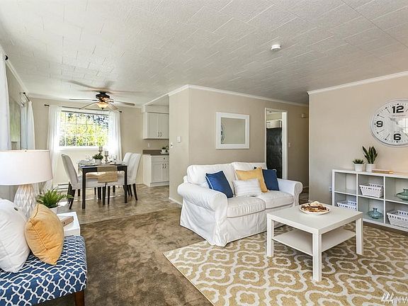 Turn key ready remodeled charmer near Boeing! Newer roof, windows, ss appliances, fixtures, flooring, beautiful white kitchen cabinets, modern bathroom vanity and sparkling quartz counter-tops. Large master bedroom with double closets. Deep soaker tub w/gorgeous tile surround. Light filled sun-room. Laundry closet w/washer & dryer. Attached 1 car garage with storage. Fully fenced back yard.