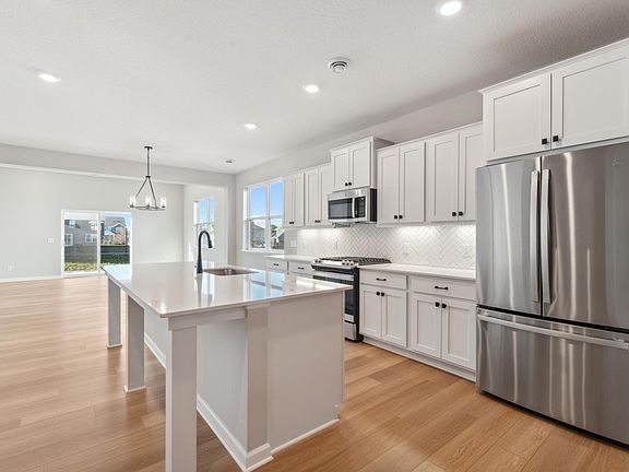 Welcome to 6606 Jody Avenue South in Cottage Grove! This new end-unit townhome offers 2,148 square feet with 2 bedrooms, 2.5 baths, a loft, and a 2-car garage. As you enter, the foyer feels especially welcoming thanks to the 9’ ceilings and views of the kitchen at the heart of the home. The galley-style kitchen offers a large island, stainless steel appliances, lots of counter space and cabinetry, plus plenty of storage in the large pantry. Across from the kitchen, the flex room with double doors can be made into a home office, media room, or whatever you need! At the back of the home, wing walls help define the family room and dining room while preserving the open flow between them. For chilly winter nights, the family room offers an electric fireplace to provide warmth and ambiance. Tucked behind the family room is your spacious owner’s suite with a vaulted ceiling. The en-suite bathroom layout includes a shower, a double-bowl vanity, a linen closet, and a walk-in closet. A connected mud room and laundry room with garage access as well as a half bath complete the main level. Make your way upstairs to access the loft, second bedroom, and additional full bathroom, and a spacious loft. What’s truly unique about this floorplan is its adaptable layout. Are you looking for the convenience of main-level living? Seeking a home with a guest retreat or dedicated kids’ space? On the hunt for the perfect floorplan for roommates? The home can meet any of those needs!