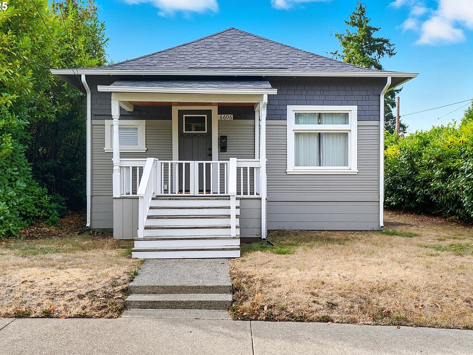 Nestled in the heart of Mt. Scott-Arleta, just steps from Mt. Scott Park and the new community center, this charming Portland bungalow combines timeless character with modern updates. A welcoming front porch sets the tone, leading into a sun-filled open floor plan with classic period details. The updated kitchen offers ample storage, while two spacious bedrooms and a beautifully remodeled bathroom make this home truly move-in ready. Recent upgrades include a new roof, fresh paint, and updated flooring; preserving the home’s original charm while enhancing comfort. The backyard adds the perfect outdoor retreat.All of this in a prime SE Portland location with easy access to Woodstock Village, Foster Blvd, and the Jade District.