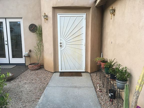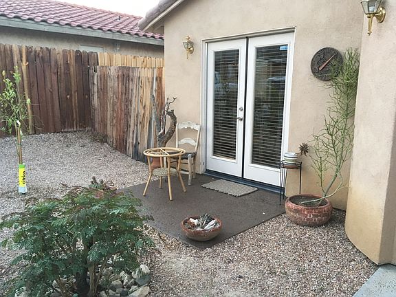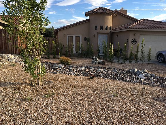 Gorgeous newer 3 BR 2 BA pool home close to Mission Lakes Blvd. Oversized driveway plus a finished two car garage. Pool has new saltwater system installed. Open and bright floor plan with huge dining area off kitchen with breakfast counter/bar. Custom kitchen counter tiles and backsplash. Stainless steel gas stove, microwave, refrigerator, and dishwasher. Walk-in pantry. Bar with built in wine rack. Saltillo floor tiles throughout most of home. Living room has custom tiled fireplace. Split bedroom floor plan. Custom touches everywhere. Large lot with built in pebble tec pool and newly stained hardscaping surrounding. New desert landscaping in front with faux creek bed across. Patio area in backyard with BBQ. Breathtaking mountain views...!