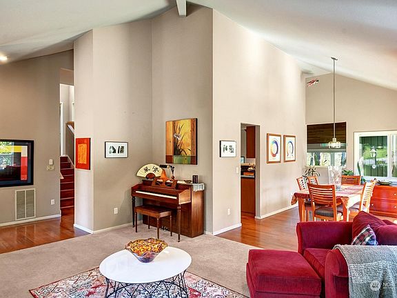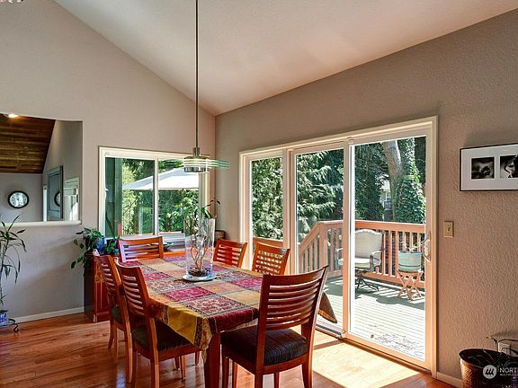 Charming 4 bedroom, 2.5 bath NW Contemporary is beautifully sited on a lush private lot in a fabulous neighborhood. Vaulted ceilings & abundant windows give a sense of light & flowing space, from the lovely living room & inviting dining room to a private, sunny deck for summer entertaining. Upstairs find a spacious primary suite & two additional bedrooms and two full baths. Another bedroom & two bonus rooms down make plenty of room for all. Perfect location, walking distance to St Edwards trails & Lake Washington, excellent Northshore schools.