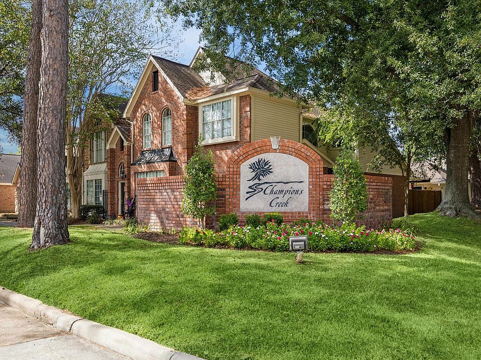 Welcome to 6607 Queensclub, a custom two-story home in the highly desired Champions Creek neighborhood, adjacent to the prestigious Champions Golf Club. There is easy access to Beltway 8 and Tomball Parkway/249. This 3-bedroom home, brick and gated, opens to a tree shaded park. Lawns are maintained by the HOA ensuring effortless curb appeal. As you enter this custom home, you are greeted with soaring ceilings in the living and dining room. The primary suite and primary bath, family room, kitchen/breakfast area, powder room and utility room complete the first floor. There is also a lovely sunroom off of the breakfast area. An abundance of windows allows lots of light; included shutters provide privacy. Two bedrooms and a bathroom are located on the second floor. A 2-car attached garage and a landscaped, fenced side yard complete this lovely home. Refrigerator, washer and dryer are included in the sale.