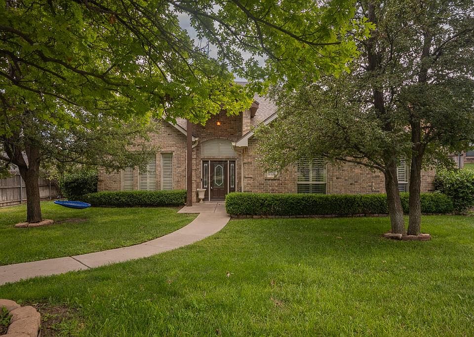 Welcome to this spacious 4-bedroom, 2-bath home located in the desirable Woodlands neighborhood. Thoughtfully designed, it features an extra upstairs room perfect for a play room, office, or even a guest bedroom. This beautiful home offers fresh updates including new carpet, fresh sod, and a new Class 4 roof for added durability. With gorgeous curb appeal that beckons you to step inside to a large living area with a wood-burning fireplace. An isolated master suite is a private retreat with a large bathroom and generous closet. A three-car garage with safe room provides extra peace of mind. With plenty of space for entertaining family or friends, this home is move-in ready and built for comfort. Take a look and make your move today!!