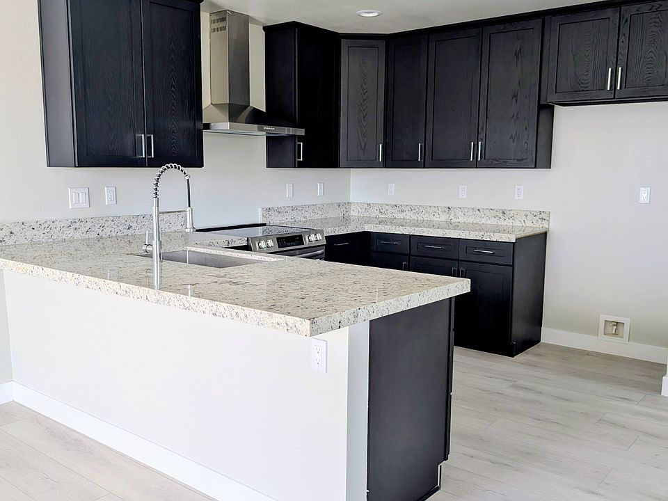 Key property features include an inviting open-concept kitchen, complete with dark cabinetry and granite countertops, perfect for culinary enthusiasts. Bright natural light floods the living area, enhanced by a ceiling fan for comfort. The contemporary bathrooms feature dual sinks, providing both convenience and style. Enjoy the ease of a dedicated laundry area and a clean, modern design throughout the bedrooms, two car garage.