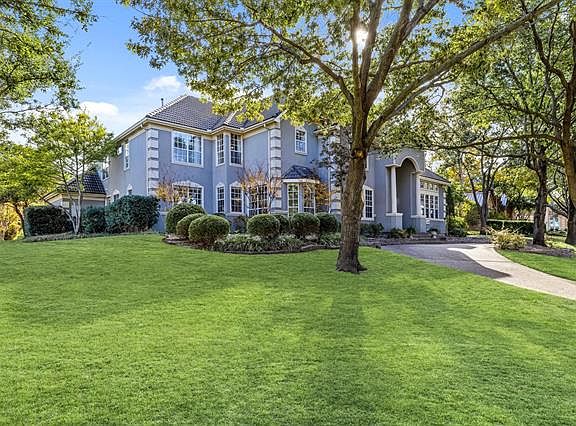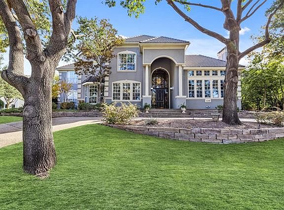 Rare find! .46 acre nestled in Hills of Prestonwood golf course! Corner home with 3 car swing entry & impressive front circular drive. Private tennis court exclusive to Muirfield Estates. Secluded oasis with covered patio, pool & large backyard! Exceptional millwork includes wood cased windows, 8' tall solid doors thru-out, 2 elegant staircases & 20' tall ceilings in main living! Secluded master has 3rd fireplace, sitting area, 2 closets, stand alone tub. Master & study or 2nd bedroom downstairs. Upstairs has 3 oversize bedrooms, huge game room & 2 baths! Recent remodels include door & faucet hardware, quartz on all vanities! 3 car garage plus 11x6 work space.