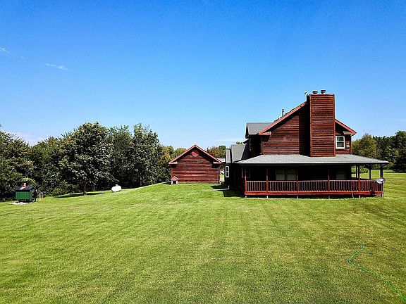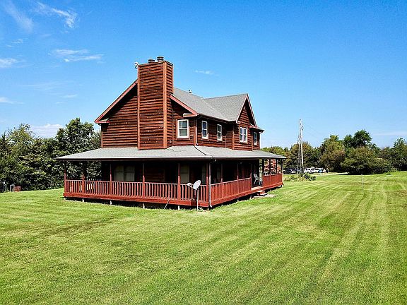 Beautiful country home with wrap around porch on gorgeous 27.6 acres! There is a pond nestled in the timber portion of the property as well as great space for gardens on the land around the home. House is on rural water, septic & propane but also has a wood boiler as an option to heat home as well! Unfinished 1,200 sq/ft basement for future living space. For property flyover, visit; https://www.youtube.com/watch?v=_QrTGgY_Bso&t=204s