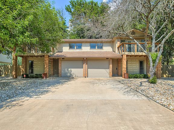 Sparkling clean duplex in Northwest Hills, minutes from Doss Elementary, Murchison Middle School, H.E.B., shopping/dining. Tree-lined street! Very well maintained, pride of ownership. All ceramic tile downstairs with a wood-burning fireplace, gas starter. Each side offers almost 1350 SF, two bedrooms & two baths, one-car garages, and interior laundry rooms. Wonderful use of space. Walk-in closets in each bedroom, masters have double French doors that lead to a balcony for enjoyment, perfect for gardening plants. Downstairs has sliding glass doors that open to a patio and fenced area. Newer engineered retaining wall. No neighbors directly behind. Nicely landscaped trees. Great investment in 78731! Rental rates have not been adjusted to current market rates due to long-term, good standing tenants.