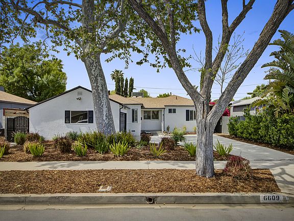Built in 1949 as part of the North Encino Homes development by architect Charles Du Bois, mostly known for his Palm Springs mid-century houses, this charming ranch bungalow is a true gem. As you enter the home, the spacious main living area seamlessly flows into a stunning den featuring slanted, exposed wood beam ceilings. Sliding doors lead to a large backyard, ideal for entertaining or enjoying a quiet afternoon under the shade of mature fruit trees. The expansive primary suite boasts a walk-in closet and an ensuite spa-like bathroom. A private deck off the primary is perfect for enjoying your morning coffee while reading the paper. This home also includes two comfy bedrooms, an additional full bathroom, and a spacious two-car garage with ample storage and parking. Lovingly maintained, with beautiful landscaping and important updates to major systems, including a new roof, this home offers modern comfort and classic charm. Nestled on a tree-lined street close to Encino and adjacent to Lake Balboa Park, this adorable retreat is a rare find in today's market..