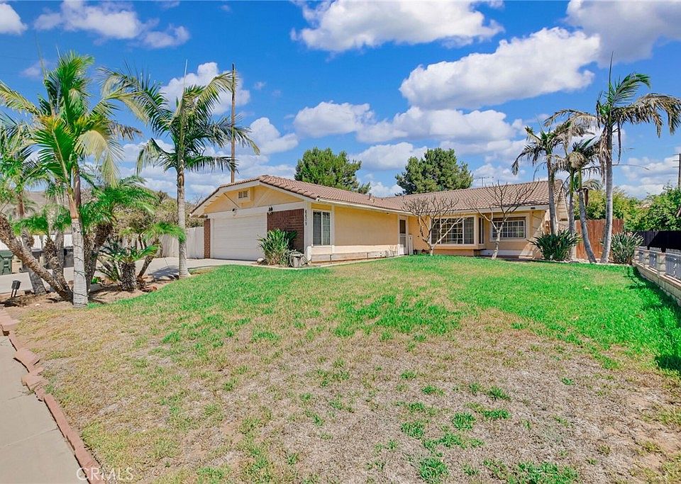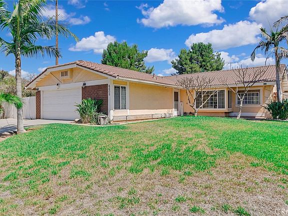 Absolutely beautiful single-story pool home situated in a great location. This home is in great condition and features a spacious living room with brick surround fireplace, dining area with French doors opening to the backyard. Upgraded kitchen with granite counter tops , white cabinets and stainless-steel appliances. Four spacious bedrooms, including the main suite and 2 bathrooms. The main suite has its own bathroom and a sliding door leading to the backyard. Large backyard with a pool and jacuzzi and a covered concrete patio; great for good together and pool parties. There is plenty of room for a garden on the side of the yard or RV Parking. Other amenities are linen closet, 2 car attached garage, ceiling fans. Centrally located, close to schools, shops, freeways, golf courses, restaurants, entertainment and freeways (91,60 and 15).