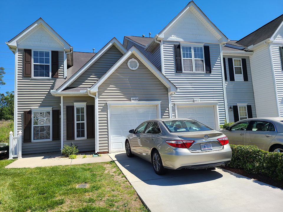 Specious upgraded end unit townhome w/Garage. Open floor plan of with 3 Bed/2.5 bath and bonus/office area. Master bedroom on 1st floor. over 1600 sqft area with big backyard. Hardwood floor and carpet. Fireplace, open kitchen, New appliances, and blinds. Beautiful backyard with open green space. Walking distance from Southpoint mall. Garage has storage room and shelves.
