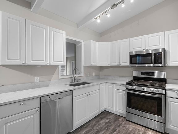 Stylish tileMature treesSleek countersStainless steel appliancesFresh paintModern kitchenPrivate fenced backyard
