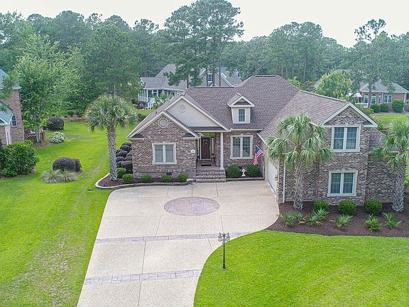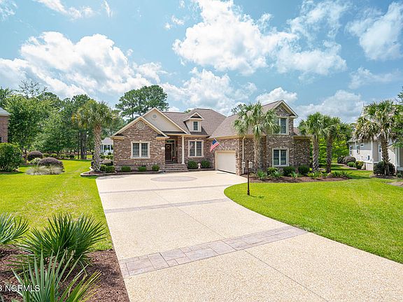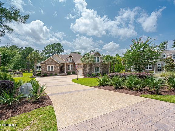Have a look at this meticulously maintained brick home located on a quiet cul-de-sac in the one and only Ocean Ridge Plantation. This beauty has incredible curb appeal with the upgraded custom stone driveway, beautiful landscape night lighting for that added touch of class, and a large back yard with a serene view of a pond. Open and flowing split floor plan with the primary suite on one side and the guest bedrooms on the other. Large bonus room upstairs with a full bath could serve as a 4th BR, an entertainment room, or an office. You'll love the amazing enclosed sunroom off of the primary suite which adds valuable additional heated/cooled square footage. The sunroom is the owner's favorite room in the house to relax in with natural light flowing in! Features both a formal dining room and a breakfast nook for your day-to-day dining. 3 full bathrooms is convenient for you and your guests. Tons of upgrades in this one: New roof in 2016, a 4 ton cooling unit replaced in 2021, and a gas furnace for heating in the few cooler months here in Coastal NC. Also features an encapsulated crawl space with a dehumidifier installed in 2019. French drains and catch basins added in the yard, hurricane protection and tinted windows throughout the home for energy efficiency, epoxy garage floor, laundry room with plenty of cabinets and a sink, granite counters and stainless steel appliances in the kitchen, a remote-controlled deck awning, trex decking, a lightning protection system, and so much more. Ocean Ridge has it all with its 4 golf courses, a beach clubhouse on Sunset Beach, a heated indoor pool, sauna, steam room, a jacuzzi, a banquet room, an outdoor pool, pickle ball courts, a well-equipped fitness center, walking trails, a nature pavilion area, a community garden, and over 50 social groups available to join. There's literally something for everyone in Ocean Ridge. Just a few minutes drive to the sand on the locals' favorite, Sunset Beach.