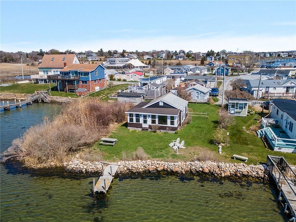 Location, location, location! Come fall in love with this waterfront cottage on Potter Pond. Relax and soak in the spectacular views of the pond and the beautiful sunsets! Launch a kayak from your own dock, hop in the pond for a dip or relax on the lawn with a cup of coffee in the morning. Stroll over to Matunuck Oyster Bar or Cap'n Jack's Restaurant for a drink and a bite to eat or head to East Matunuck beach for an afternoon of sand and surf. This one bedroom, one bath seasonal cottage offers a kitchen with granite counters and a living room, dining room and sunroom all with water views. The shed is a great spot for a workshop or storage. It is being sold fully furnished, "As Is", with 2 kayaks and a dinghy. Walking distance to East Matunuck Beach means never having to pay for beach parking or wait in beach traffic again! This property is not on leased land and is not part of the Association at The Village at Potter Pond.