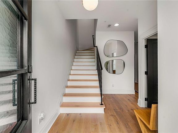 Luxurious, sleek, and modern, custom/designer outfitted, four-floor (with elevator), 3-bedroom, 3 full bath and 2 half bath, townhouse on the Beltline in Inman Park. Adjacent to Krog Street Market with beautiful downtown Atlanta city views to the west and green Inman Park views to the east. Starting from the top: Fourth floor features a beautiful custom bar with riveted aluminum ceiling and DOUBLE rooftop terrace, one with an alfresco dining area with city views perfect for sunset, and the other with a cozy patio with mature jasmine vines + fireplace. Along with a half-bath, this rooftop floor is the ultimate entertainment space! Moving down to the third floor, you find the primary suite with fireplace, built-in custom gun metal cabinets, large walk-in closet, 55" TV, and full ensuite with double-sinks. Opposite the primary suite is the library-come-office with custom white-oak shelving and views of the Beltline and its tree tops, with floor to ceiling windows, perfect for working from home. This room, which can be used as a bedroom as well, has its own full bath. Keep moving down to the main living area with 9' ceilings and you find perfect indoor entertainment and living space. Starting with the chef's kitchen outfitted with Wolf/Thermador appliances including built-in double-ovens, a steamer, dishwasher, four-burner stove with grill top, and paneled fridge/freezer + a sexy copper hood. The dining area includes a built-in banquet seating with floor-to-ceiling shelving, and wine fridge. The main living area adjacent to the kitchen/dining also features a Francoise mantel and designer furniture with a 55" TV and direct views of the Beltline. The ground floor level has an ensuite guest bedroom, providing guests with complete privacy. This floor also contains the 21ft wide garage with space for 2 SUVs and includes an electric vehicle charging port. This perfect urban living home is just steps from epic eateries like Superica, Boccalupo, Staplehouse, Rathbun's Steak, and dozens more.