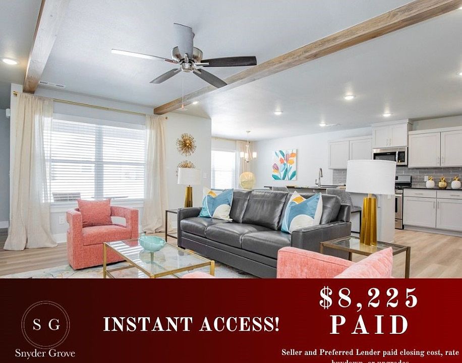 Fredrick Plan MODEL HOME! $8,225 PAID- $5,225 buyer incentive from Builder & $3,000 if you use the preferred Lenders, blinds and gutters included! RD Eligible! Fredrick Plan- New Construction spacious home in the beautiful new subdivision of Snyder Grove with a 3 car garage. Enjoy the open, light and bright living room with gas fireplace and custom stained beams. One story home with eat-in kitchen overlooking backyard & covered patio. Kitchen has tons of counter space with large island, granite countertops, gas range, cabinets with storage and pantry. Open concept that's perfect for entertaining. Spacious master bedroom with large master bathroom. Master bath has double sinks walk-in shower, tub and walk-in closet. Great backyard on a nice flat lot! Perfect location with easy access to Delford Rieff Park, Prairie Grove Aquatic Park and Highway 62.