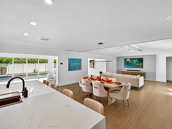 Completely remodeled modern Central Beach home, landscaped by Rock City Gardens. Everything brand new inside & out. 4 bed/2.5 bath w/ flexible 4th bed that can serve as office/dining space. Kitchen features waterfall quartz island, abundant custom cabinetry, & luxe appliances. The primary suite includes dual showers, marble accent walls, built-in shoe closet, & expansive walk-in closet. The spacious AC sunroom opens fully via stacked sliders & feat built-in bar. Outside, the backyard incl. saltwater pool/spa & covered pergola. New roof & impact windows. Minutes to the beach, shops, & dining.