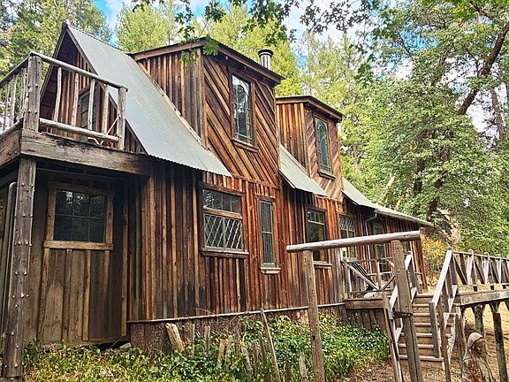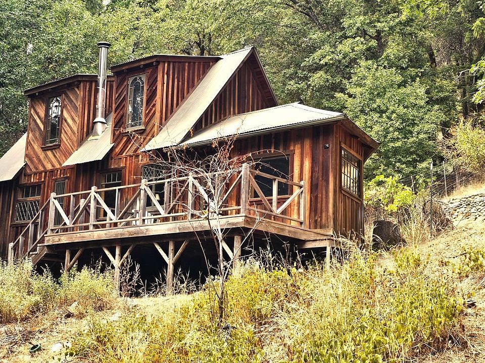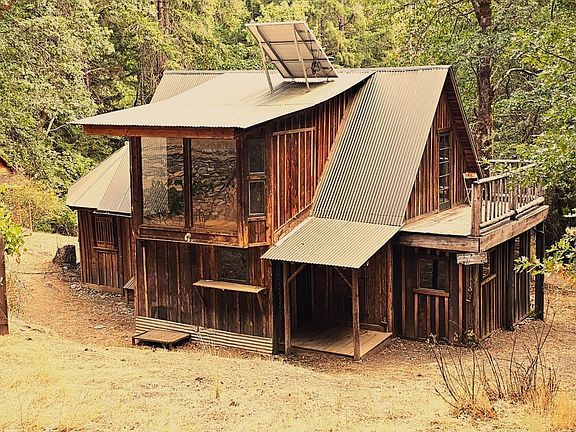 Whimsical cabin in the woods! Are you looking for a gorgeous cabin nestled in the forest with guest quarters? Perhaps a homestead, potential Airbnb, retreat home, hunting cabin...or even a quaint location for a western movie set? Step into the heart of Trinity County and let this 1,050 sf, 1 bedroom 1 bath, whimsical get away on 17 acres capture your heart! Every inch of this custom off grid cabin was built with authentic and detailed craftsmanship, from natural live edge boards to hand milled logs, and ceiling to floor natural wood. Home was remodeled in the last decade by a skilled local builder. Imagine relaxing on the front deck or bedroom balcony overlooking the pond while taking in the sounds of nature and smell of clean mountain air. Wanting to grow a garden? Already in place are custom raised beds built with beautiful rock work, drip irrigation and solar system. The charming guest cabin is ready for your company to relax and enjoy. Water by well, power by solar, and septic system in place. This is a MUST SEE to appreciate!!