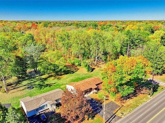 Beautifully maintained ranch home in the Spencerport School District! Nestled on a FANTASTIC 1.3-acre wooded lot, this home offers a wonderful blend of privacy, comfort, and convenience! Step inside to find sun-filled living spaces with hardwood floors and a bright maple kitchen featuring ample cabinetry and counter space. The spacious living and dining rooms provide an inviting layout that’s perfect for everyday living or entertaining. The main bath has been tastefully updated with modern finishes and a clean design w/ a handy private access to the bedroom area. The finished lower level adds valuable living space ideal for a family room, rec area, home gym, or guest space & includes a convenient powder room. Central air keeps you comfortable during the warmer months, and pride of ownership shines throughout! Outside, enjoy your own personal PARK! The expansive 1.3-acre yard is framed by mature trees offering shade, beauty, and privacy. Relax or entertain on the patio overlooking the wooded backdrop, the perfect place for morning coffee or summer gatherings. The extra-deep 1.5-car garage includes a rear overhead door for easy access to lawn equipment or recreational gear, and there’s also a barn-style shed providing additional storage space. This move-in ready ranch offers the best of one-floor living, with exceptional outdoor space and a peaceful setting that’s still close to schools, shopping, restaurants, and expressways. A rare find that truly has it all! Delayed negotiations Thurs 10/23 @11AM