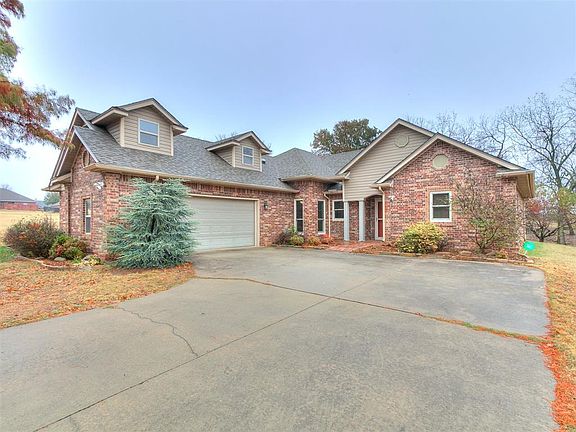 Discover this incredible home tucked away in the charming Lakeside Addition in Noble, offering peaceful water views of the serene pond just beyond the treed backyard. Inside, a spacious living room welcomes you with warm wood floors, a pellet fireplace, and custom built-ins. French doors lead into a versatile flex space overlooking the backyard and pond—perfect for a study, office, reading room, or simply a relaxing retreat to enjoy nature. The generous kitchen provides abundant counter space and storage, a pantry, dining area, and a convenient snack/breakfast bar. The primary suite features thoughtful accessibility amenities including a walk-in tub, a separate roll-in shower and large closet with built-ins! Two additional downstairs bedrooms with wood floors offer comfort and convenience, one ensuite and one with hall bathroom access. The expansive upstairs bonus room is ready to adapt to your lifestyle needs. Step outside to a welcoming patio with a covered pergola—an inviting spot to unwind or entertain while taking in the water view. Additional features include a walk-in tornado/safe room, a full-home generator, in-ground sprinkler system, Ring security system, Culligan water system, and vinyl eaves. A rare find with natural beauty and thoughtful amenities—this home is ready to welcome you!