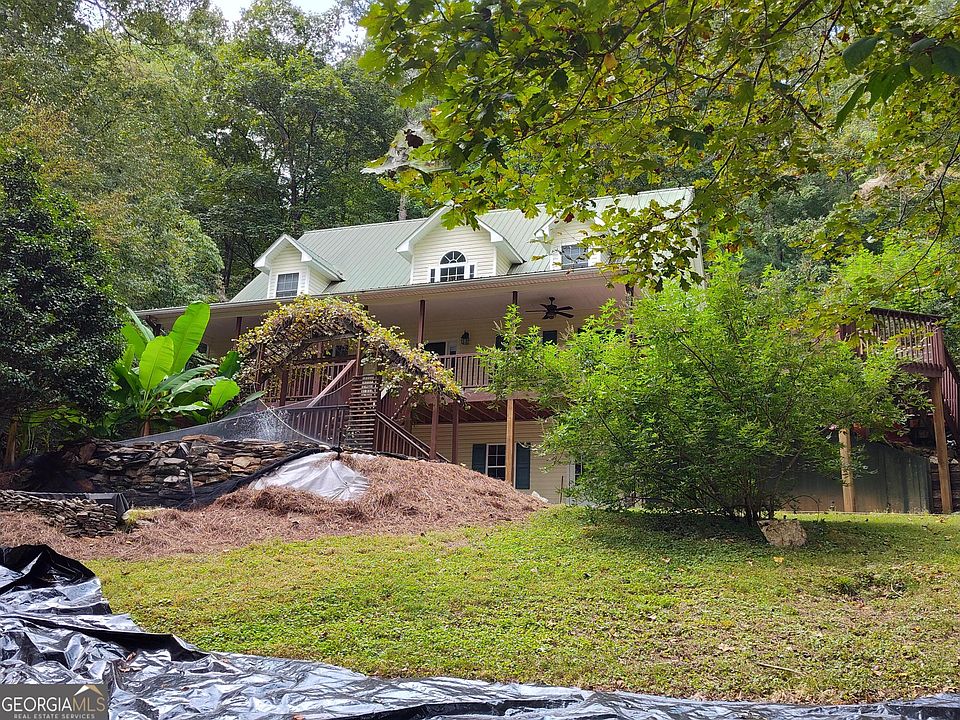 Discover this charming home at 661 Navaho Way in Ellijay, GA, nestled in a tranquil setting. This property offers a spacious interior with an inviting living area, well-appointed kitchen, and comfortable bedrooms. Enjoy outdoor gatherings on the generous decks surrounded by nature. The home provides a peaceful retreat while still being conveniently located to local amenities and attractions. Don't miss the opportunity to explore this delightful residence. The home features three levels of living space, with a vaulted ceiling and gas log fireplace in the living area. It includes a finished terrace level with both interior and exterior access and a one car garage. The terrace level is a complete home in itself with a full kitchen and separate laundry. The owner has combined four lots, so there is plenty of room to stretch out and explore. There is a separate paved driveway leading to a concrete slab with poured walls. Can be used for raised bed gardening or use your imagination. Coosawattee River Resort is gated with limited access. It has many amenities included for resident use. River parks, three swimming pools (One is open year round), clubhouse, fitness center, tennis courts, pickle ball courts, basketball, putt-putt, teen center and game rooms.