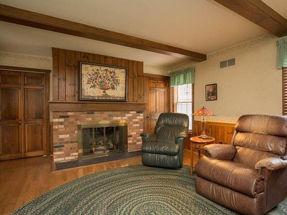 Treat yourself to the luxury of abounding space, afforded by the three stories of living space and partially finished basement comprising this charming Saltbox. Wrapped in cedar siding and resting on nearly 1 acre, outdoor living space is also abundant with plentiful open yard space and an expansive freshly stained rear deck. Neutral ceramic tile makes for easy clean -up in the dark stained oak eat-in country kitchen, equipped with walk-in pantry. Warm hardwood floors extend a cordial welcome in the remainder of the main floor living area and follow suit through the second floor bedrooms. Also graced by a built-in desk, a bookcase flanks the living room fireplace and makes for the perfect space to display your cherished photos. Rustic beams and knotted pine unite a second fireplace in the family room area, where a wet bar is tucked in a closet for impromptu entertaining. Enviable owner suite with connecting dressing/closet area and private full bath. Freshly updated hall bath.