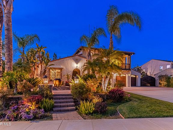 A slice of Santa Barbara in Simi Valley! Absolutely Stunning Northgate Estate located on one of the most desirable streets on over 20,000 sqft lot! Fabulous curb appeal with lush landscaping and water feature. The home faces open space, in this small community of executive homes nestled against the rolling hills and close to the community park, hiking and riding trails. Featuring detached approx 600 sqft, one bed GUEST HOUSE with family room, kitchenette and full bathroom. The main house offers 5 beds and 5 baths in over 3200 sqft with 1 bed and en-suite bath and a powder room down. The elegant living room has beamed ceiling, fireplace and plantation shutters. The formal dining room is perfect for entertaining with French doors leading out to the private courtyard with sitting area and fountain perfect for outdoor dining. Huge gourmet kitchen with 10''x12''center island, breakfast area, top of the line appliance package and sub zero fridge, double ovens, tons of storage plus butlers pantry. Saltillo tile floors downstairs. Beautiful dark walnut wood stairs with Spanish tile risers take you upstairs to the large master bedroom with window seat, built in bench and surround sound. The master bathroom has a large sunken tub and separate stone stand up shower and large walk in closet. The upstairs guest rooms are large in size with views! The backyard is simply paradise with a Pebble Tec pool/spa with flagstone surround, lots of different sitting areas around the yard. Enjoy cooking outside on the built in BBQ. Covered patio, large grass area with palm trees. Lots of fruit trees.. There is an attached 4 CAR garage, large paved R.V access and loads of extra parking on the driveway! Laundry room w/sink downstairs. This property is picture perfect! Also opportunity to join Sinaloa lake. We cannot wait to welcome you to the neighborhood!