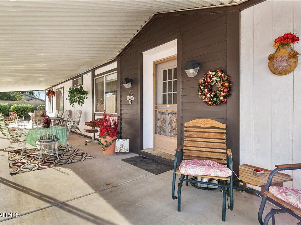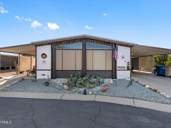 Completely Furnished!55+ Centrally located 2 bedroom/2 bath, Kitchen has eat in area, 2 Wall Ovens, tons of storage. Also Formal Dining Area with Hutch and Huge Family Room with newer LVP wood-look flooring and an Electric Fireplace. New Hot Water Heater, Roof just maintained with extra insulating material. Master Bath separate Shower & Tub. Master Bedroom LARGE Closet. Inside Laundry area with a sit down desk. 2 Car Carport and Separate 8x15 Workshop with Electric. Fridge/ Hot Water Heater 2 years old.