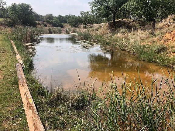Heated poolRock fireplaceHot tubPost oak treesNice view of creekSandy soil