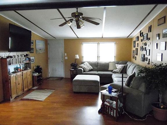 1989 doublewide situated on 5.45 acres. Great place for horses with 5 ft. welded wire fencing in back two fields. Run-In barn with power and water. Storage shed with loft and power. Also has 3 apple trees, plum tree and a cherry tree with grapevines and blueberry bushes. Home also has chain linked fence around it. Sq. ft./lot size est.