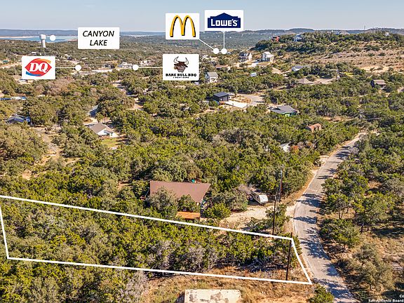 Prime Location in Canyon Lake! Conveniently located near a state highway with easy access to San Antonio (34 miles) and New Braunfels (17 miles), this spacious lot offers both privacy and peace of mind, tucked deep into a subdivision with reduced crime risk. The property features a large, buildable area that slopes to a seasonal creek-well out of flood range. Enjoy Stellar Park within the subdivision for baseball, dog walks, or frisbee. Utilities are available; a septic system will need county approval and installation upon building. The active, low-fee POA keeps the neighborhood clean and welcoming. Canyon Lake, the gateway to Texas Hill Country, boasts 80 miles of shoreline, 30+ boat ramps, no city taxes, and services provided by Comal County and two emergency districts. Nearby, Startzville Elementary is just a mile away. With a quiet, family-friendly lifestyle and proximity to Austin (70 miles), this location has it all.