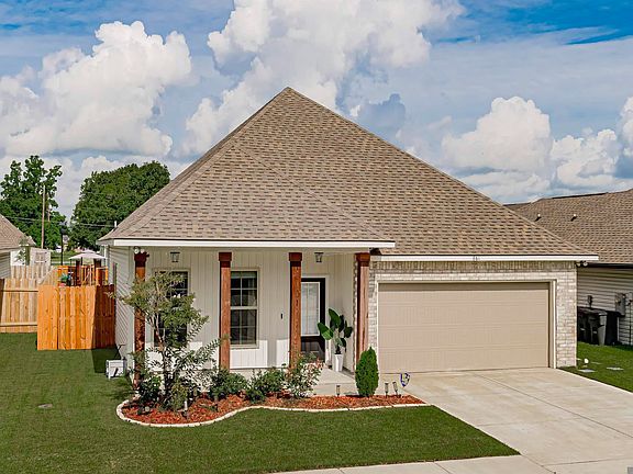 Are you looking for a 4 bed/2 bath home conveniently located in Gonzales that’s LESS than 4 years old? Keep reading! This is one of the most charming homes you’ll see in all of Ascension parish and has SO much to offer for this price! The peaceful living areas, beautiful color schemes, and amazing backyard is one that has to be seen in person to truly appreciate. Driving up to the home you’ll notice a great front elevation with 4 wood beams, fresh landscaping, and a 4 year old architectural shingled roof! Upon entering the front door you’re greeted by new luxury vinyl plank flooring, extra recessed lighting throughout, a sleek custom fan in the living room, and a custom light fixture above the dining table. This home offers a large open concept so the chef in the kitchen can converse with the guests in the living room! The kitchen features a large granite island, a separate movable butler's bar that makes a great coffee bar, and a pantry room. The spacious primary suite also features the luxury vinyl plank flooring and has a great view of the back yard. The primary bathroom has a separate walk in shower, a soaking tub. The large, fenced in backyard offers several entertaining areas such as a gazebo style canopy deck, an additional lounge deck with pergola cover, and lastly a shaded back patio before walking on the uninterrupted green space! This is one of the largest homes in the Waters Cove neighborhood at 1,835 Sqft. It has never flooded and is in flood zone X, so no flood insurance required! Schedule your showing today!