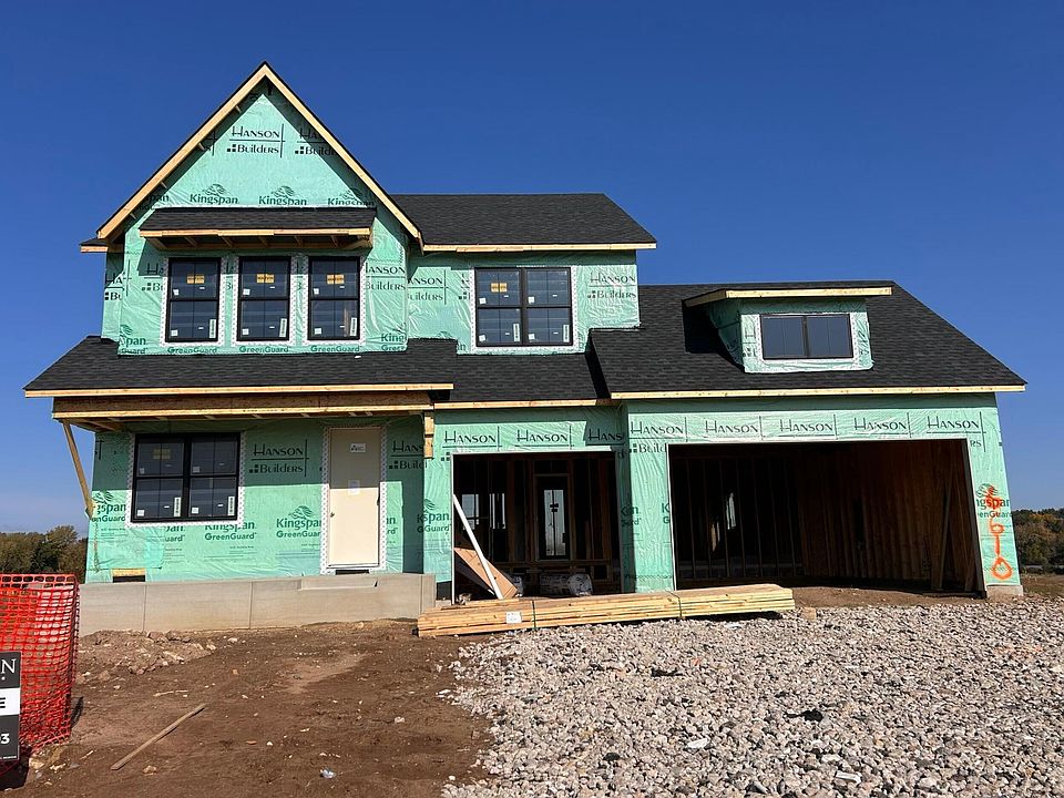 The latest in a storied history of sport center floorplans. Hanson Builders offers the Weston Sport. This thoughtful designed, open-concept home featuring 4 spacious bedrooms up, all with walk-in closets & a second floor laundry. The main floor boasts a gourmet kitchen which includes a huge island, custom cabinets, quartz counters, a beautiful backsplash, floating shelves, a gas cooktop, double ovens, and much more. The lower level showcases a large family room and of course the sport center! This home is located in Hanson Builder's newest neighborhood, Mississippi Landing – which offers the perfect balance of natural beauty and modern convenience. Located just off the scenic shores of the Mississippi River, providing a unique setting with over 100 acres of nearby parkland, trails, and outdoor space—all while being minutes from everything Cottage Grove has to offer. Please note that this home is under construction. Completion date is scheduled for February, 2026.